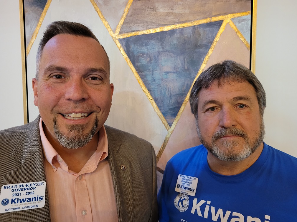 Texas Oklahoma District Governor Brad McKenzie (left) and Trustee Marty Mullins attended Ennis club building activities Sunday April 24th.